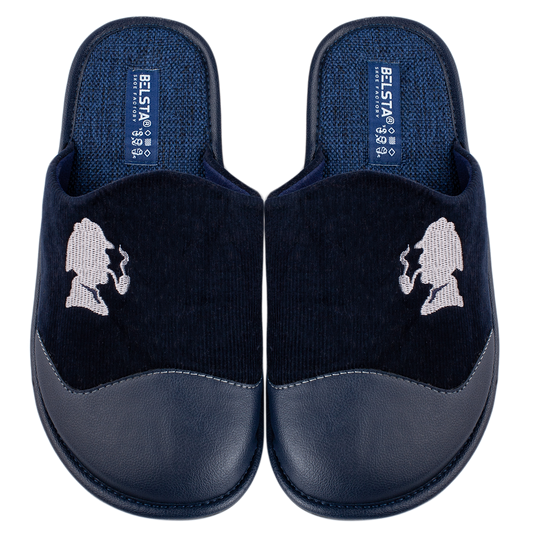 Мъжки затворени пантофи BELSTA от велвет с еко кожа и бродерия/Men's Closed Slippers BELSTA from Velvet with Eco-Leather and Embroidery