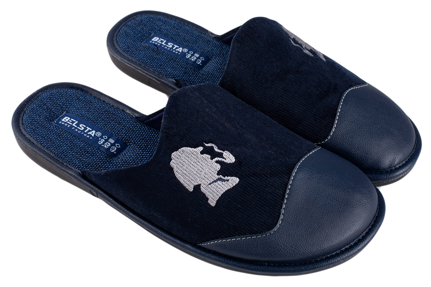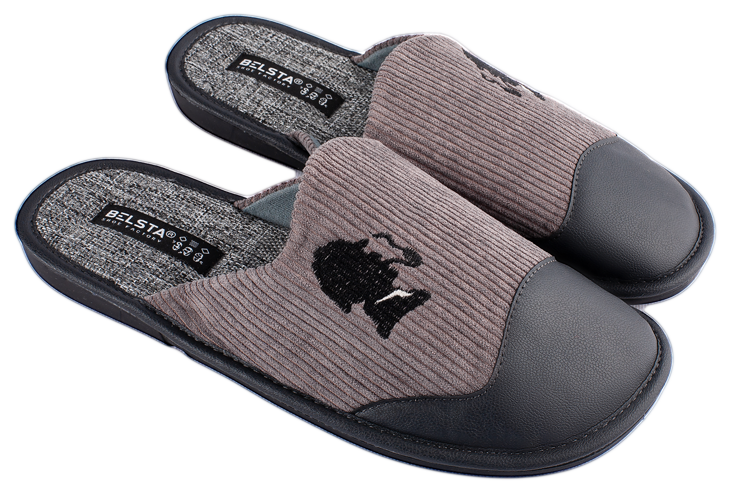 Men's slippers from BELSTA made of velvet and eco-leather. Suitable for mid-season wear. The insole is textile.