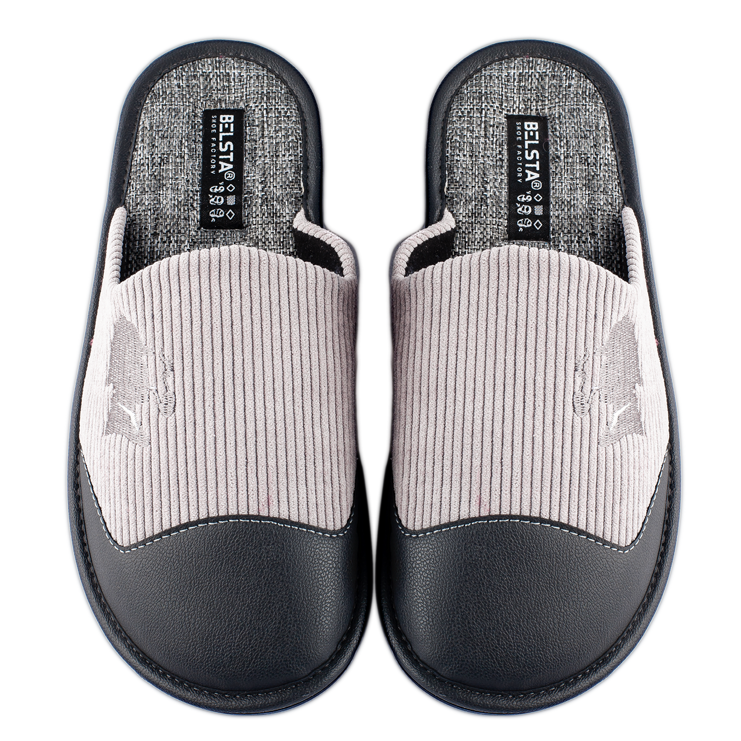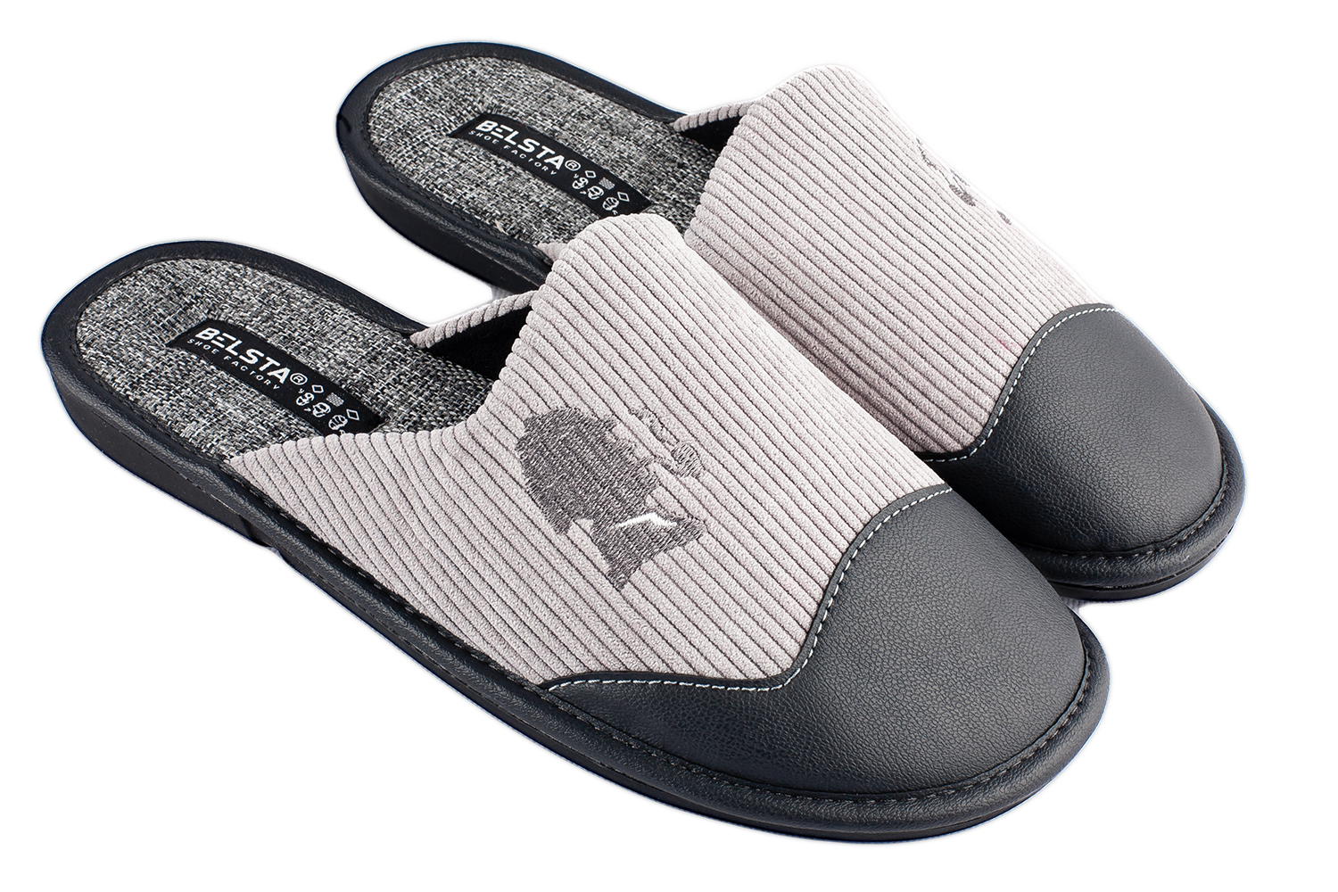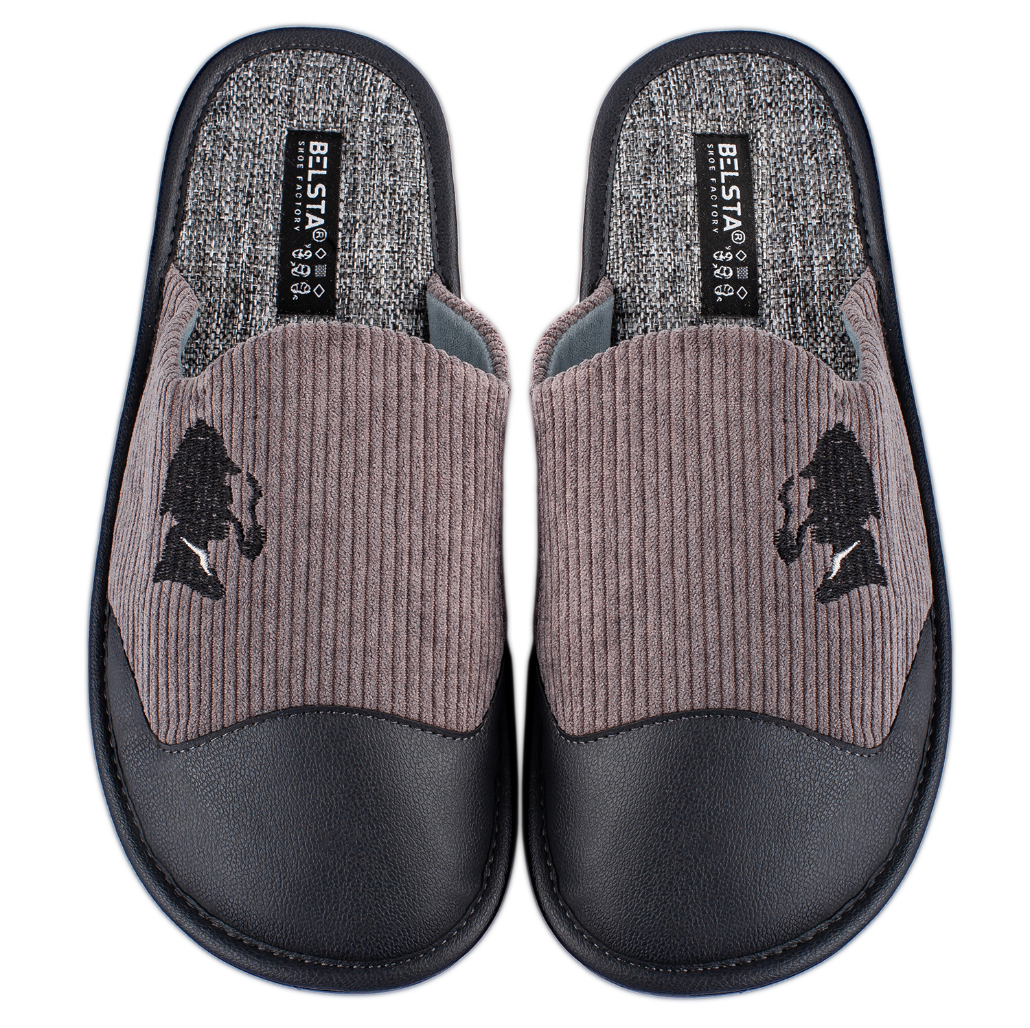 Мъжки пантофи от BELSTA, изработени от велвет и еко кожа. Моделът е подходящ за носене през междинния сезон. Стелката е от текстил.
